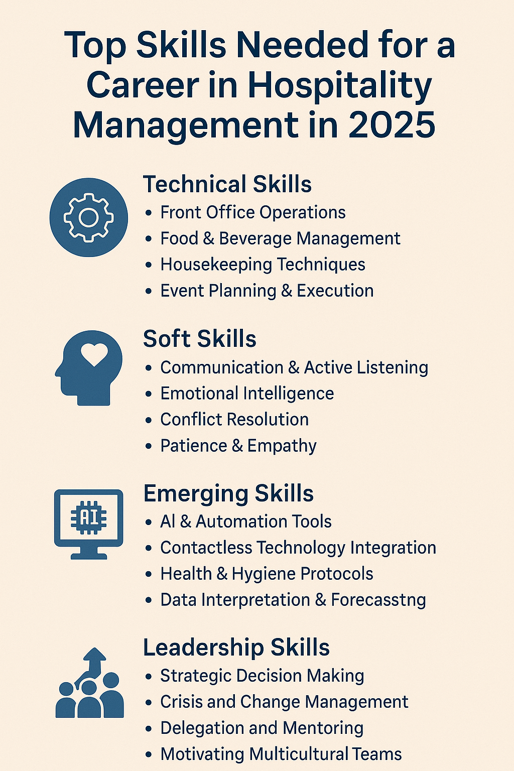While technical knowledge is important, hospitality is ultimately a people-focused industry. Here are some key skills every aspiring hospitality manager should develop: